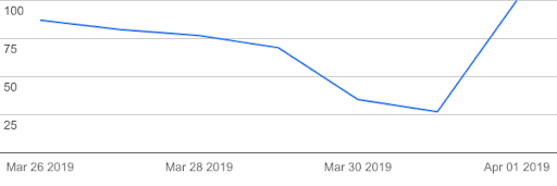The number 100 represents the peak search interest.