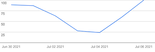 The number 100 represents the peak search interest.
