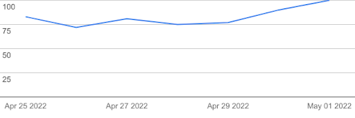 The number 100 represents the peak search interest.